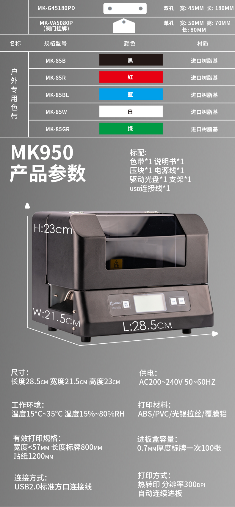 匯淼標牌機MK950通過與計算機相連,根據(jù)要求印制出各種圖形和符號。它采用熱轉印方式,字跡清晰,